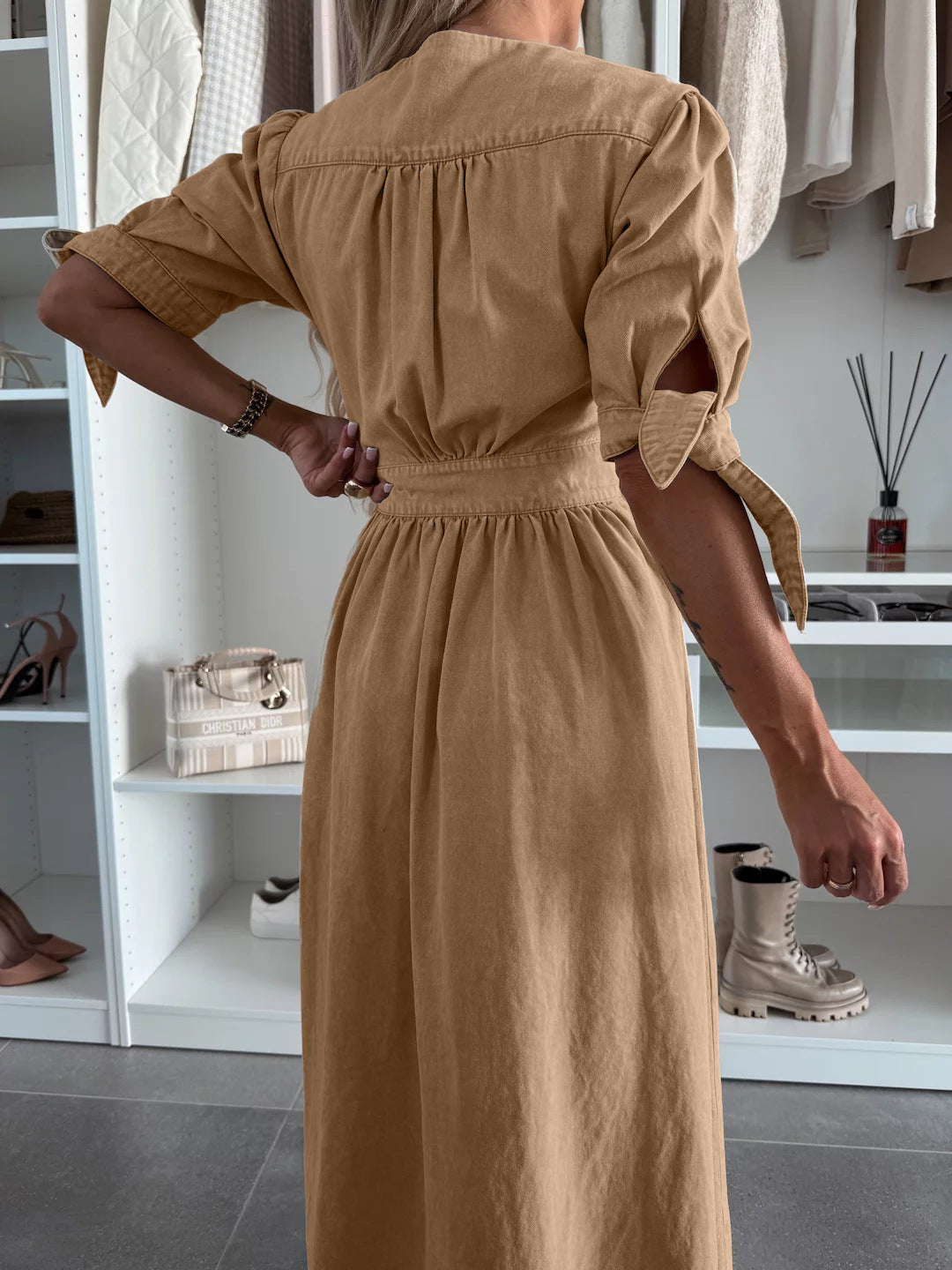 The REGINA robe is a tribute to the woman who combines strength and gentleness—for terrace days and starry evenings alike. Crafted from high-quality, breathable denim, this dress pairs effortless elegance with everyday comfort. A statement that lasts.